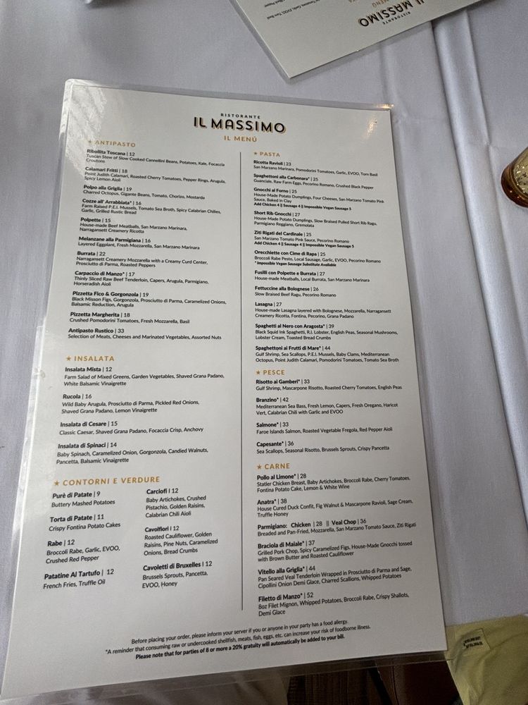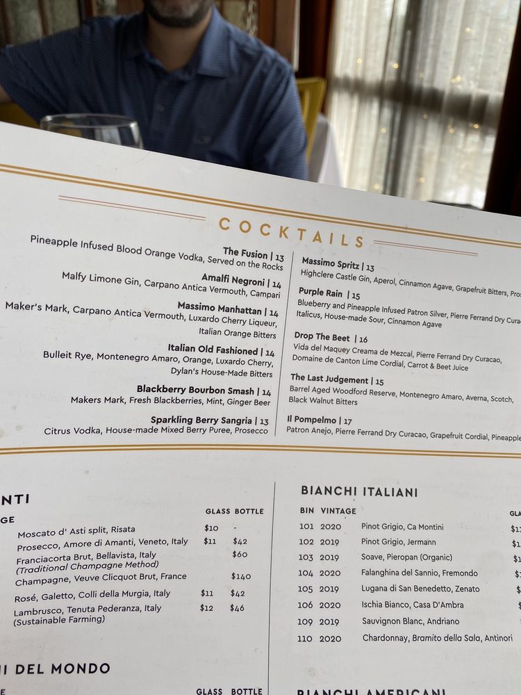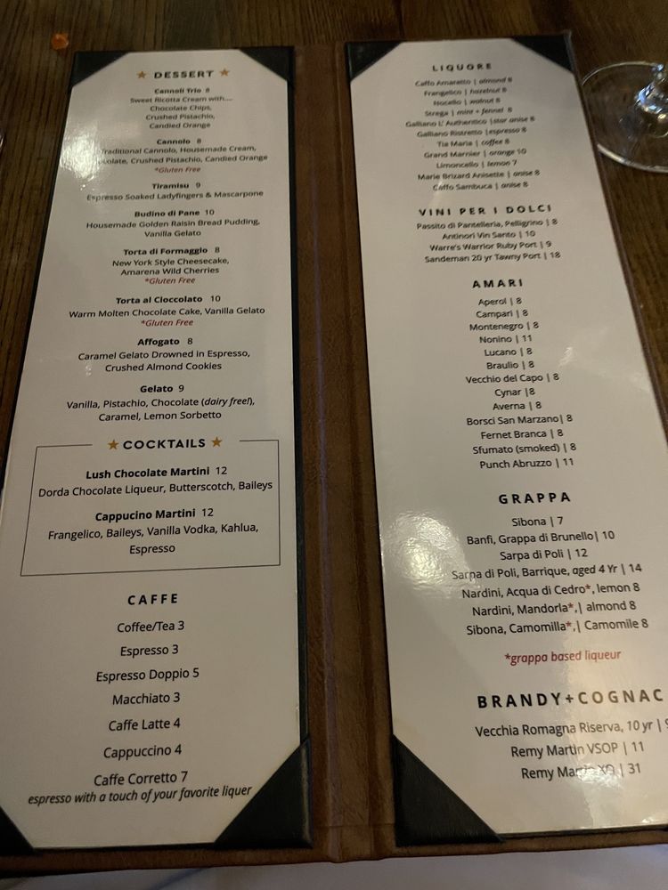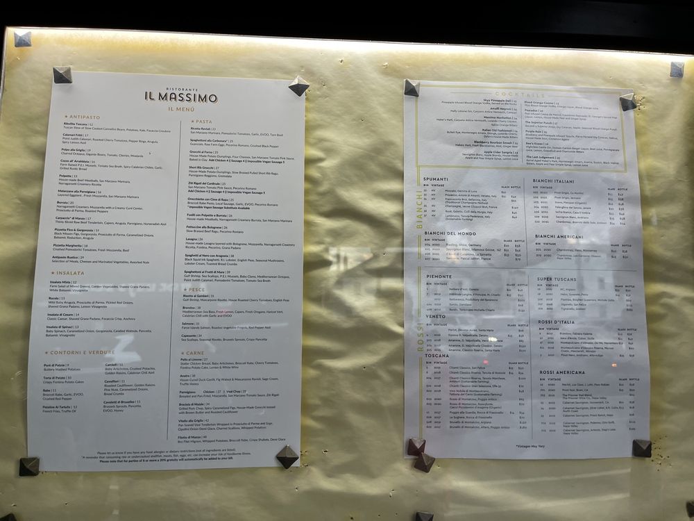 Introducing the menu at Massimo Restaurant, located in Providence, Rhode Island. This Italian bar offers a variety of dishes with vegan and vegetarian options, taking reservations and offering takeout. The starters include Ribollita Traditional Tuscan Stew, Antipasto selection, Calamari Fritti, and more. Sandwiches and pizzas like Margherita and Gorgonzola & Fig are available. Pasta lovers can indulge in dishes like Short Rib Gnocchi, Four Cheese Gnocchi, and Ricotta Ravioli. Customers praise the attentive service, delicious food, and extensive gluten-free options. The ambiance is described as classy and upscale, with a vintage vibe downstairs. An exceptional wine list and creative cocktails enhance the dining experience at Massimo Restaurant. The restaurant also provides various convenient amenities like free valet parking, gender-neutral restrooms, and QR code menus for a modern touch.